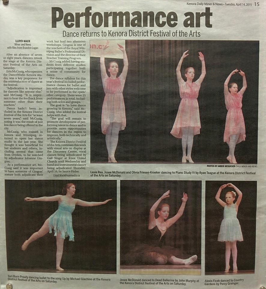 2015 marked the return of Dance to the Kenora District Festival of the Arts!