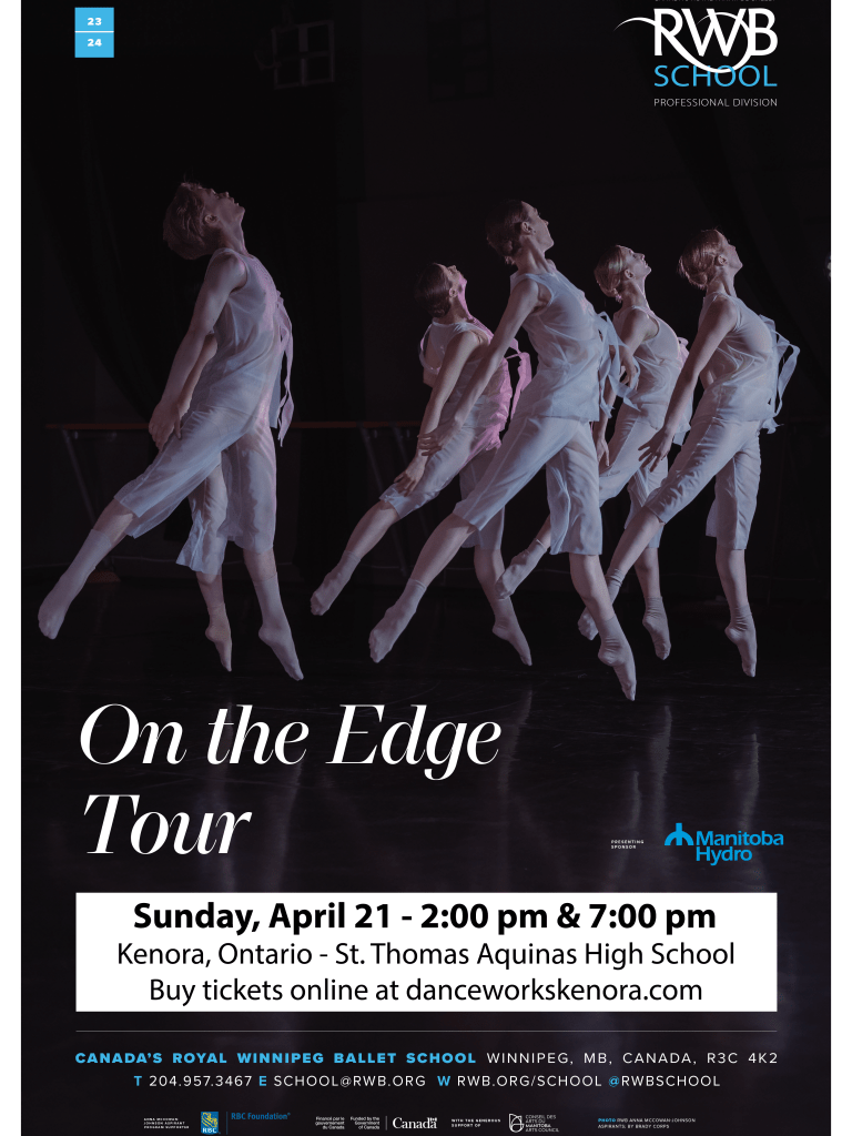 DanceWorks Kenora is thrilled to welcome dancers from the RWB School Anna McCowan-Johnson Aspirant Program on Sunday, April 21 for a performance of both classical and contemporary dance. This is an exciting opportunity for members of our community to experience ballet up close and learn about the athletic and artistic development of a professional dancer from some of the stars of tomorrow.